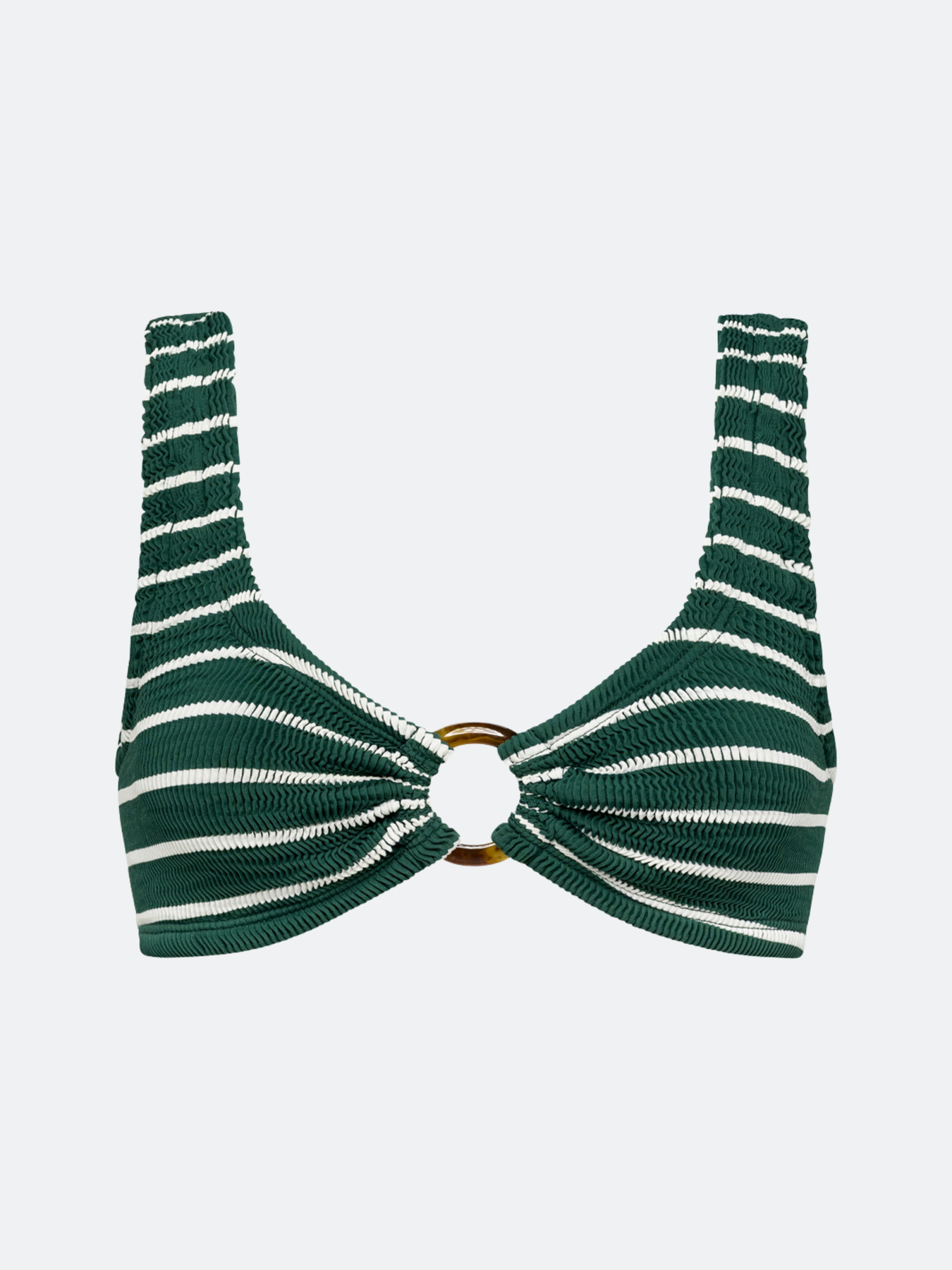 A fresh take on our best-selling scoop neck, now with a bold tortoise shell ring at the center. Made from our signature one size crinkle fabric (fits 2–12), this style offers extra support—perfect for bigger cup sizes.