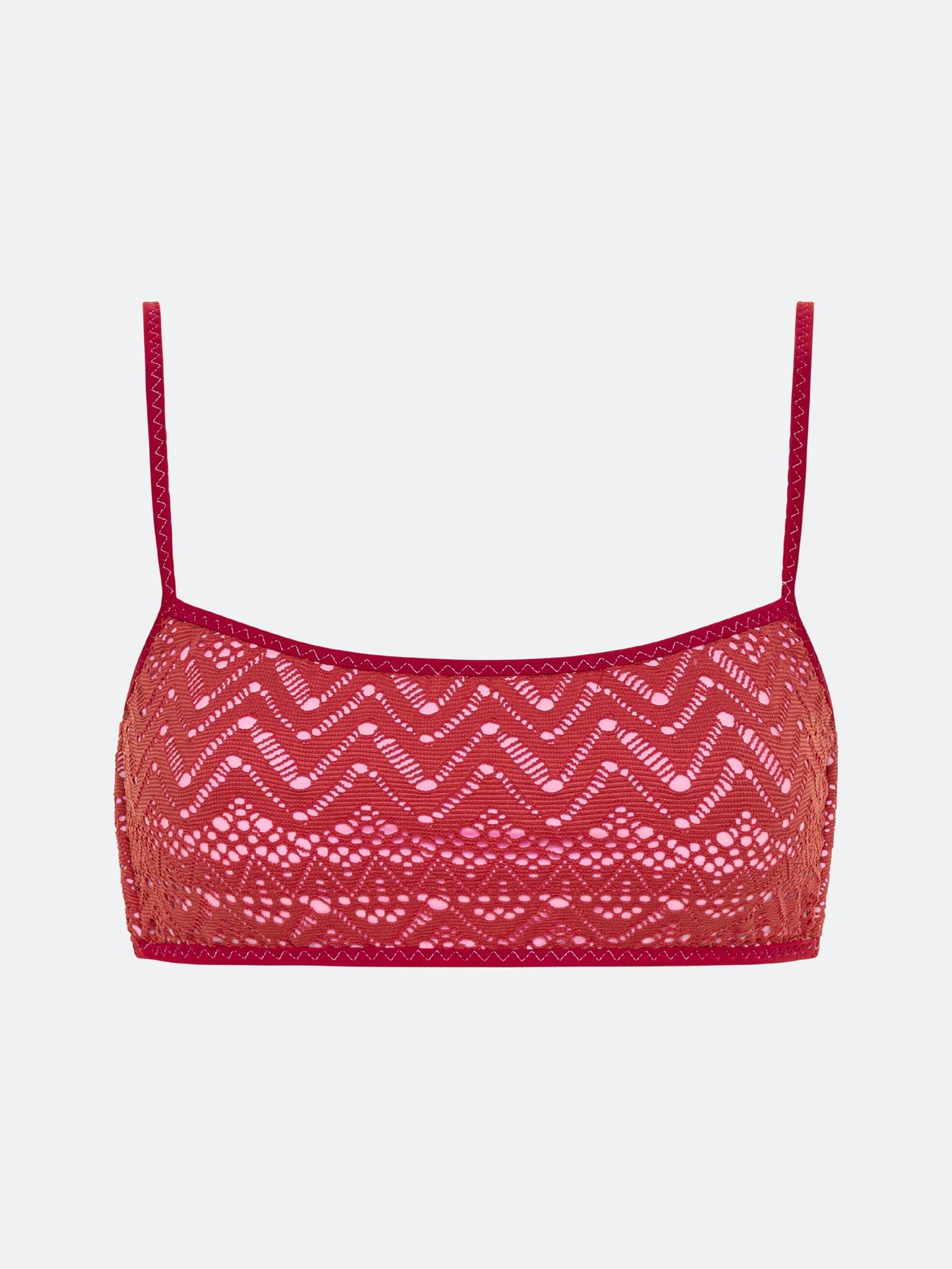 This red mesh scoop neck top with pink lining is effortlessly cool and stylish. The open back keeps it breezy, and the zig zag stitching adds a subtle, cool detail. It’s comfortable, flattering, and just different enough to make you want to wear it all summer.
