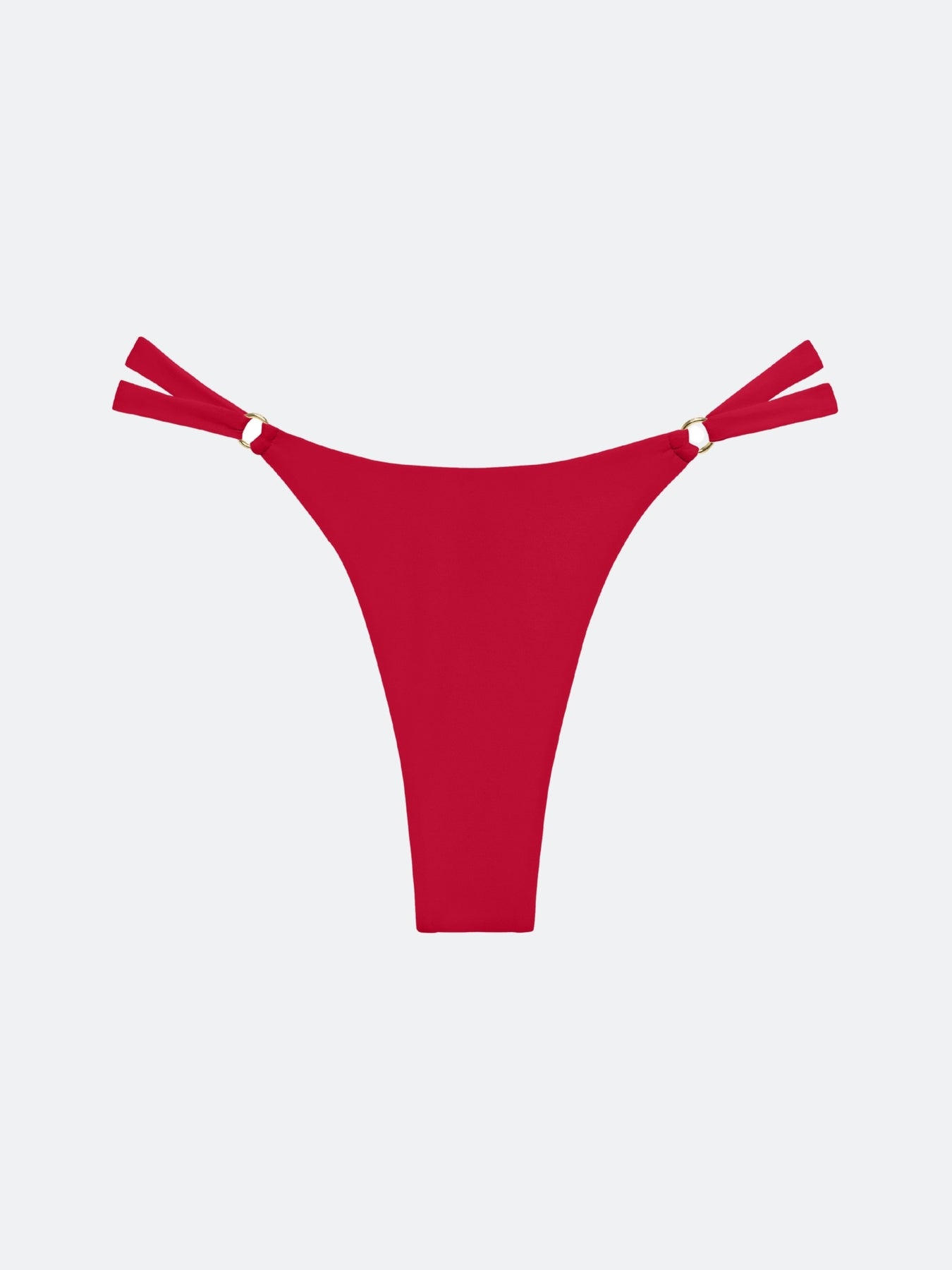 Minimal coverage with an extra flair - The Kiawah Bottom has a high cut leg, plus gold ring details and a soft strap side for a perfect tan.