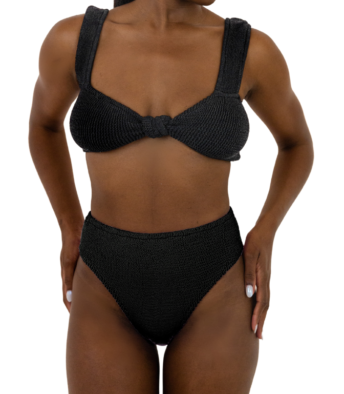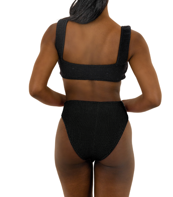 A new high waisted bottom for your collection! What many consider to be our most comfortable swimsuit, this bottom will effortlessly stretch to fit U.S. sizes 2-12. Seamless and soft to the touch, these high quality pieces are hand-cut and hand-sewn in Los Angeles. Our flexible material sits higher on the hip - providing a full coverage and comfortable fit!