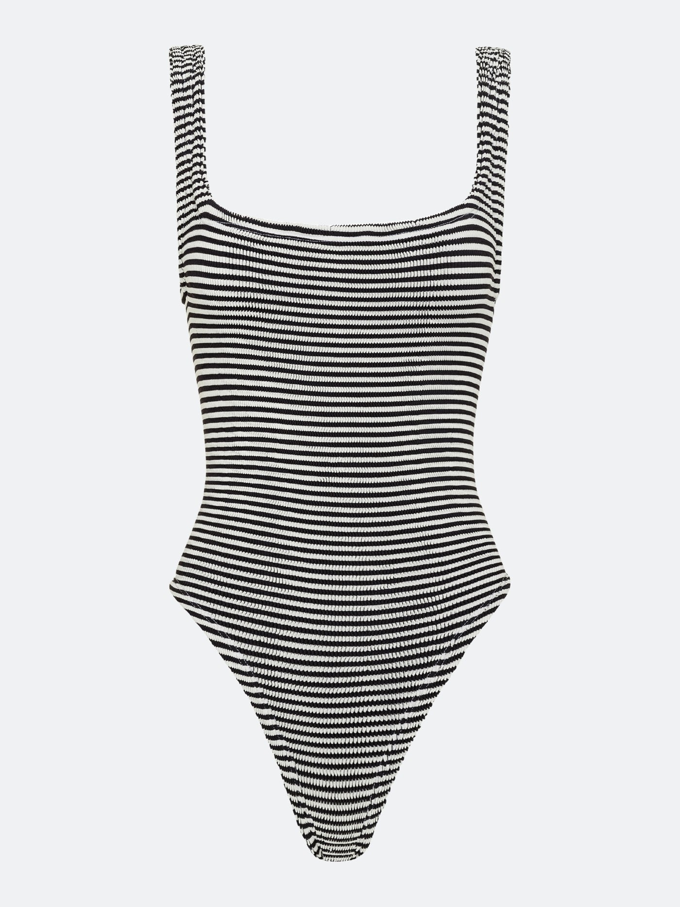 Our newest essential one-piece is finally here! What many consider to be our most comfortable swimsuit, this piece effortlessly stretches to fit U.S. sizes 2-10. Seamless and soft to the touch, these high quality pieces are hand-cut and hand-sewn in Los Angeles. Our flexible material can be styled higher or lower on the hips - adapting to the contour of your figure.