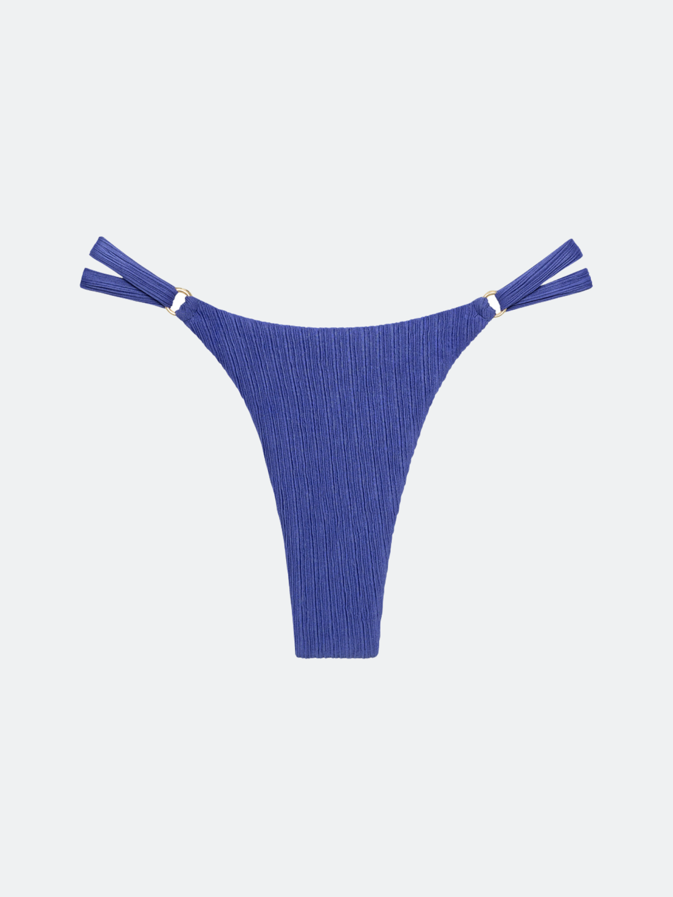 Minimal coverage with an extra flair - The Kiawah Bottom has a high cut leg, plus gold ring details and a soft strap side for a perfect tan.