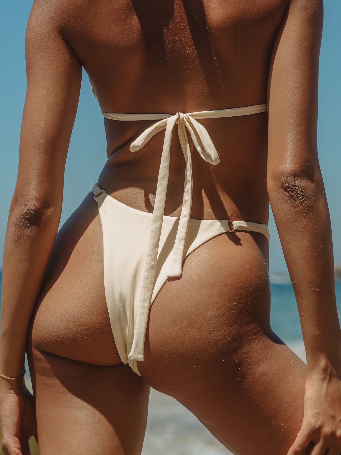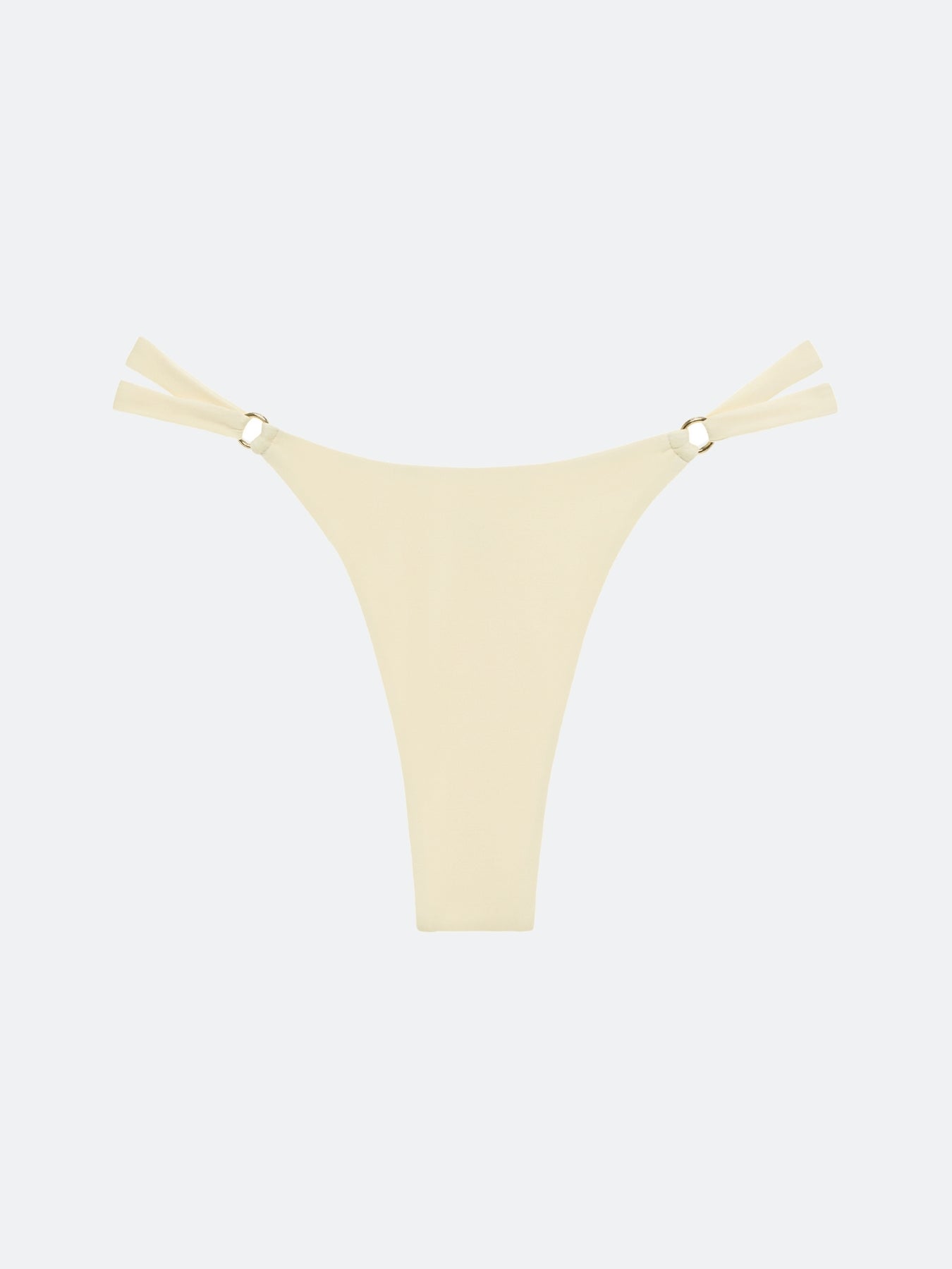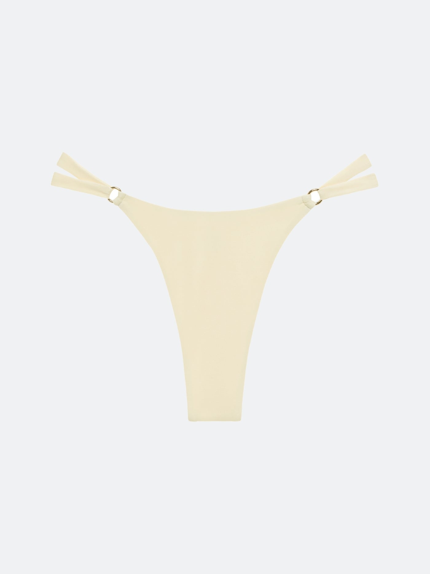 Minimal coverage with an extra flair - The Kiawah Bottom has a high cut leg, plus gold ring details and a soft strap side for a perfect tan.